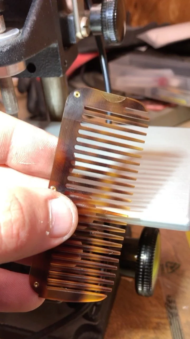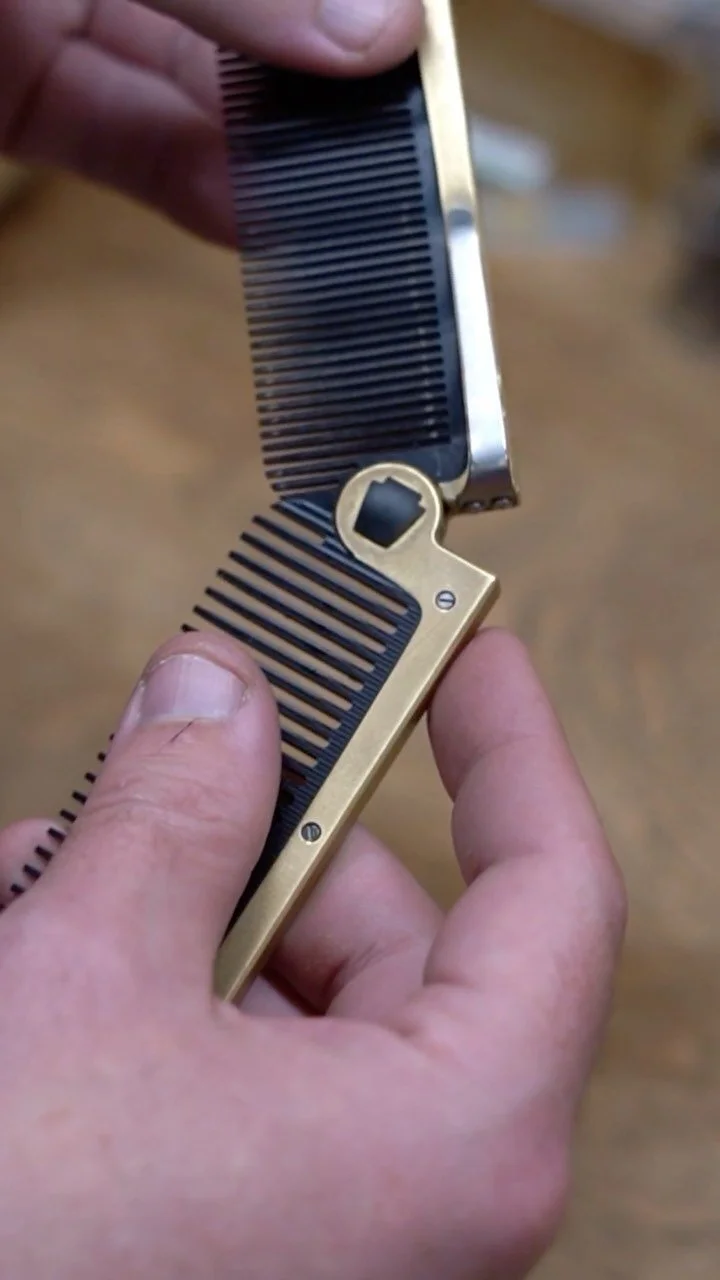 The first object by CMSK Collaborative – The Keystone Comb. This is a folding comb made of the finest materials we could get our hands on. We're considering this the evolution of your standard pocket comb. It's significantly better designed, incredibly well crafted, and meant to last a lifetime.
